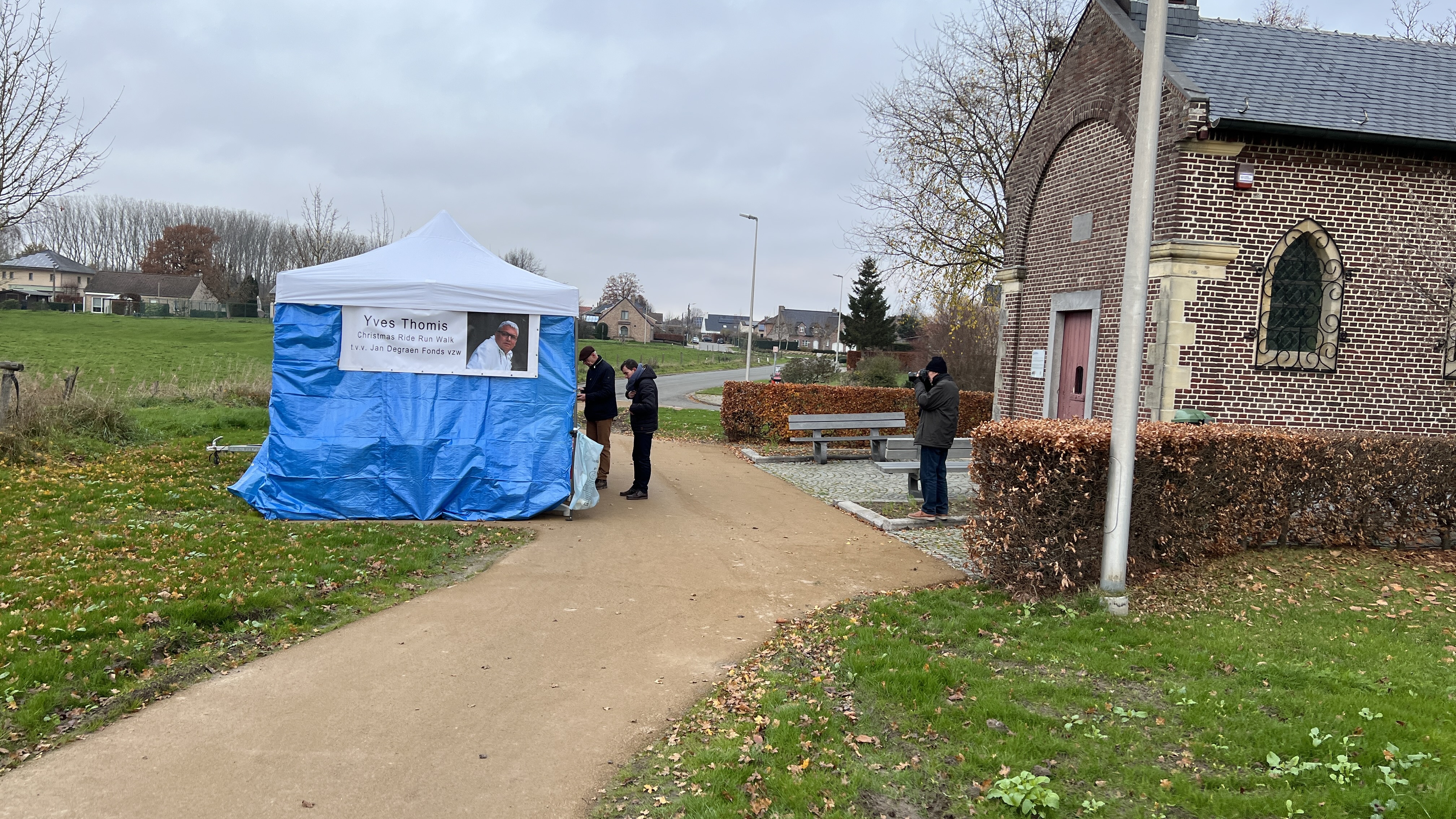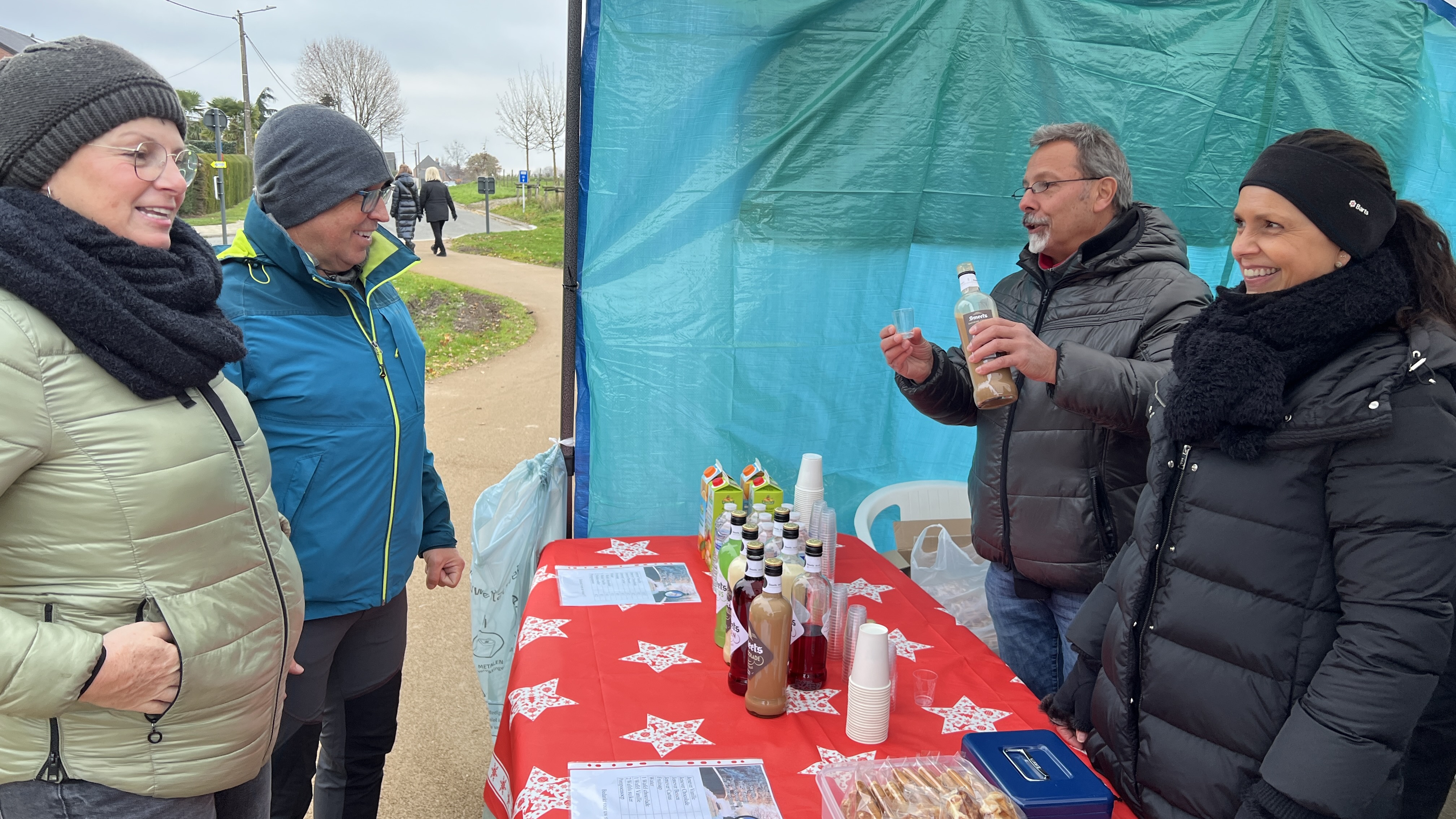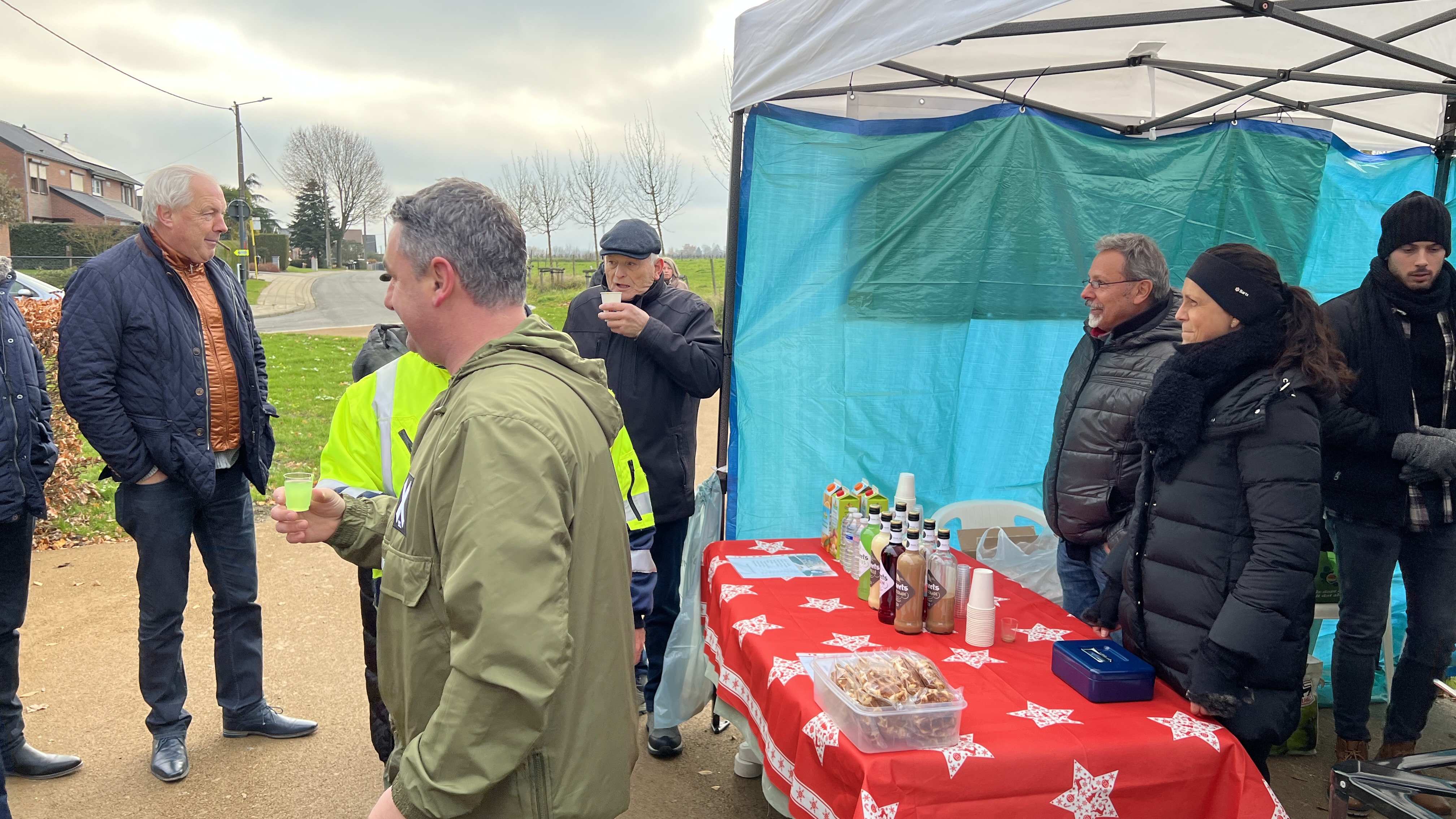 Met de start aan café De Alver had je keuze uit 2,5 – 5 of 8 km. Onderweg aan de Sint-Rochuskapel kon je bij een jeneverstand even genieten van een assortiment jenever, fruitsap, water en pompoensoep. Spijtig genoeg werd Het fietsen afgelast wegens het zeer koude weer.