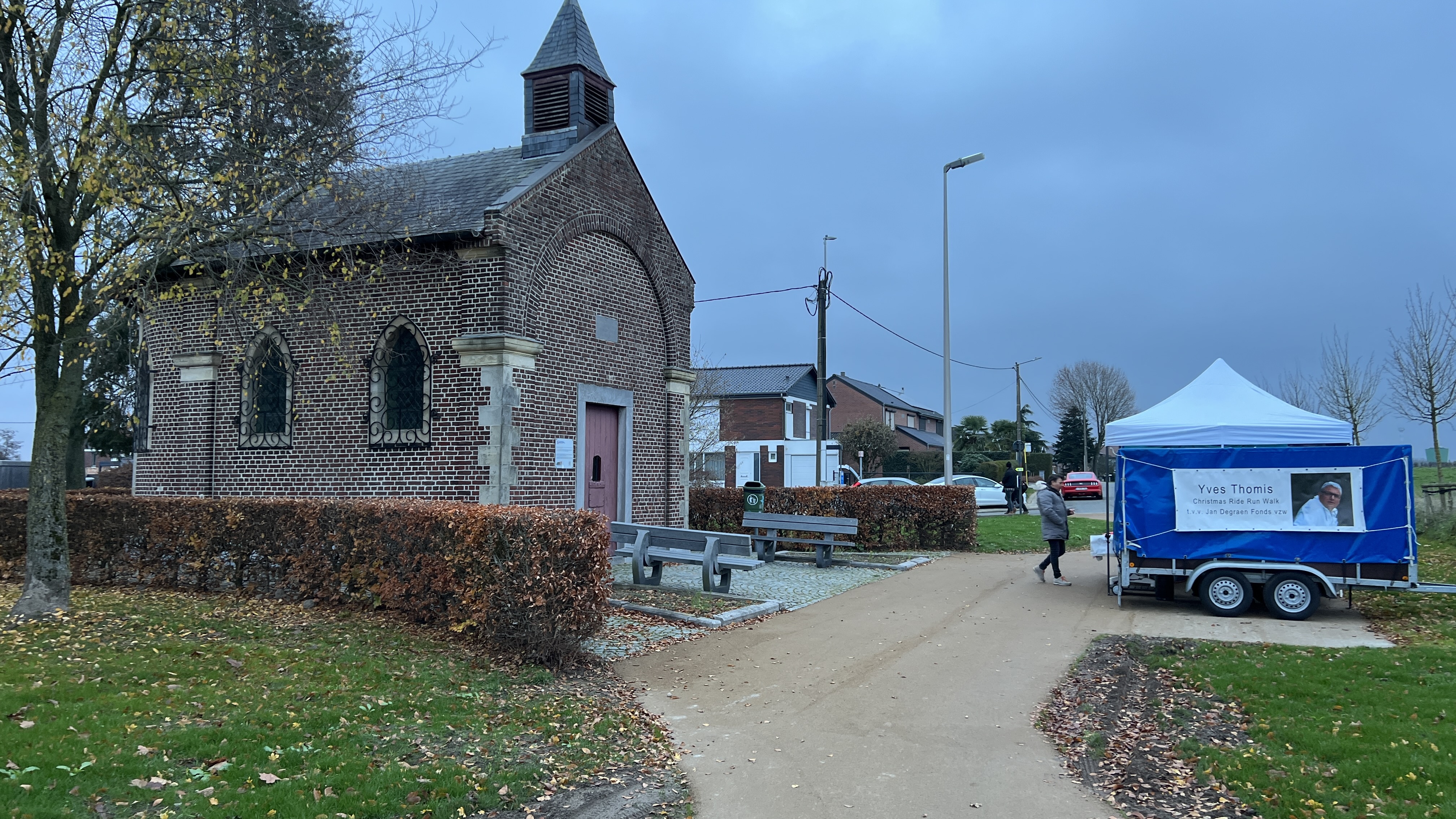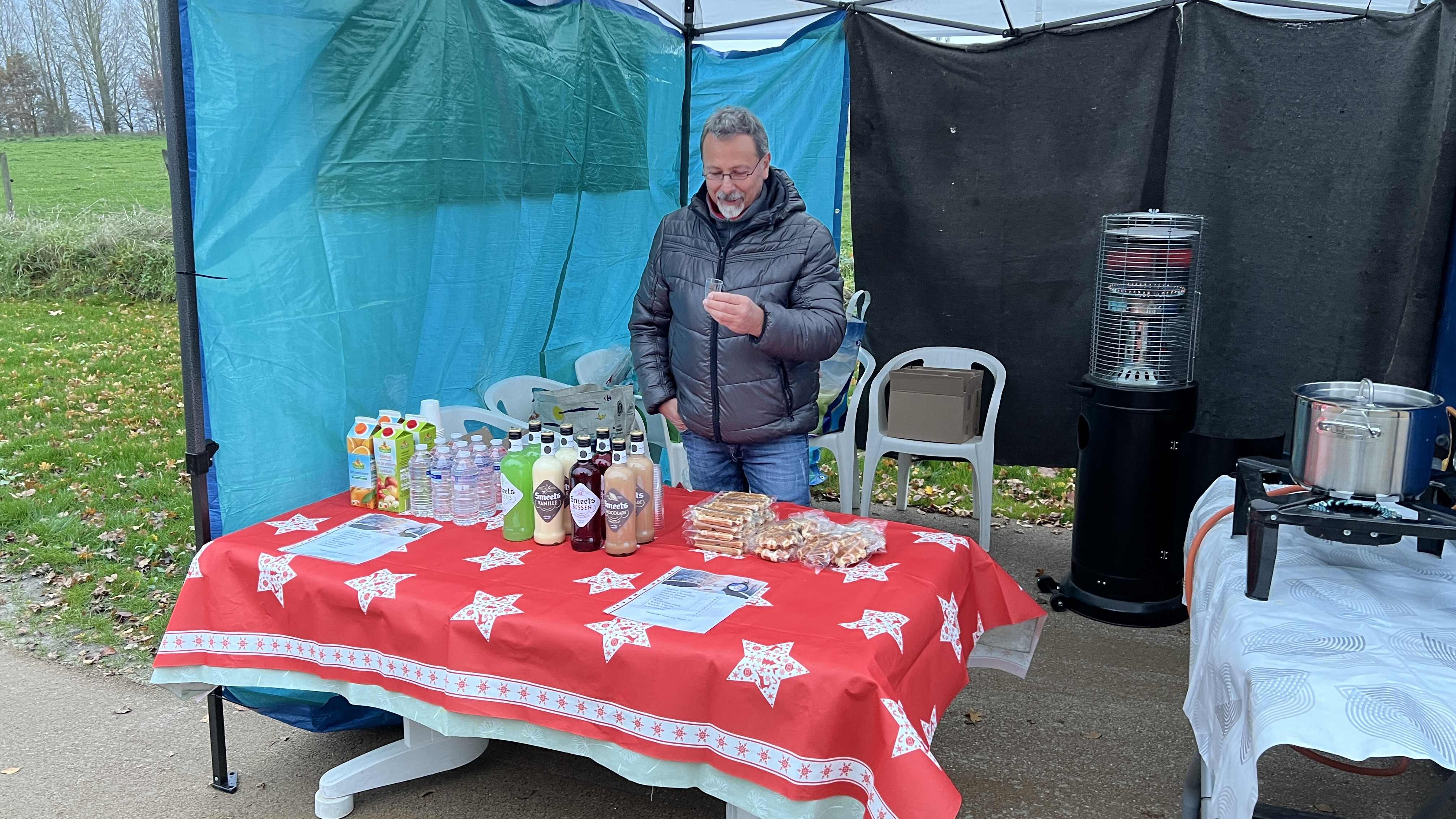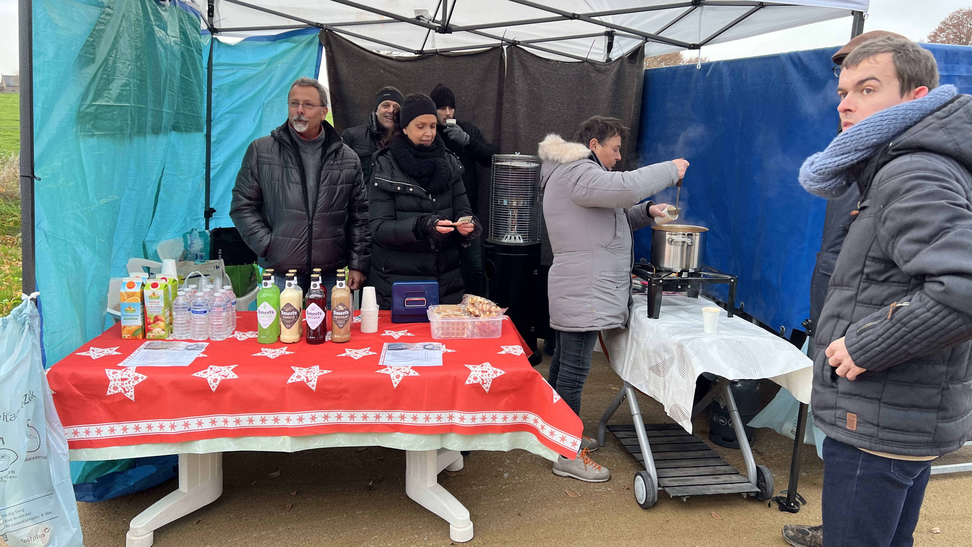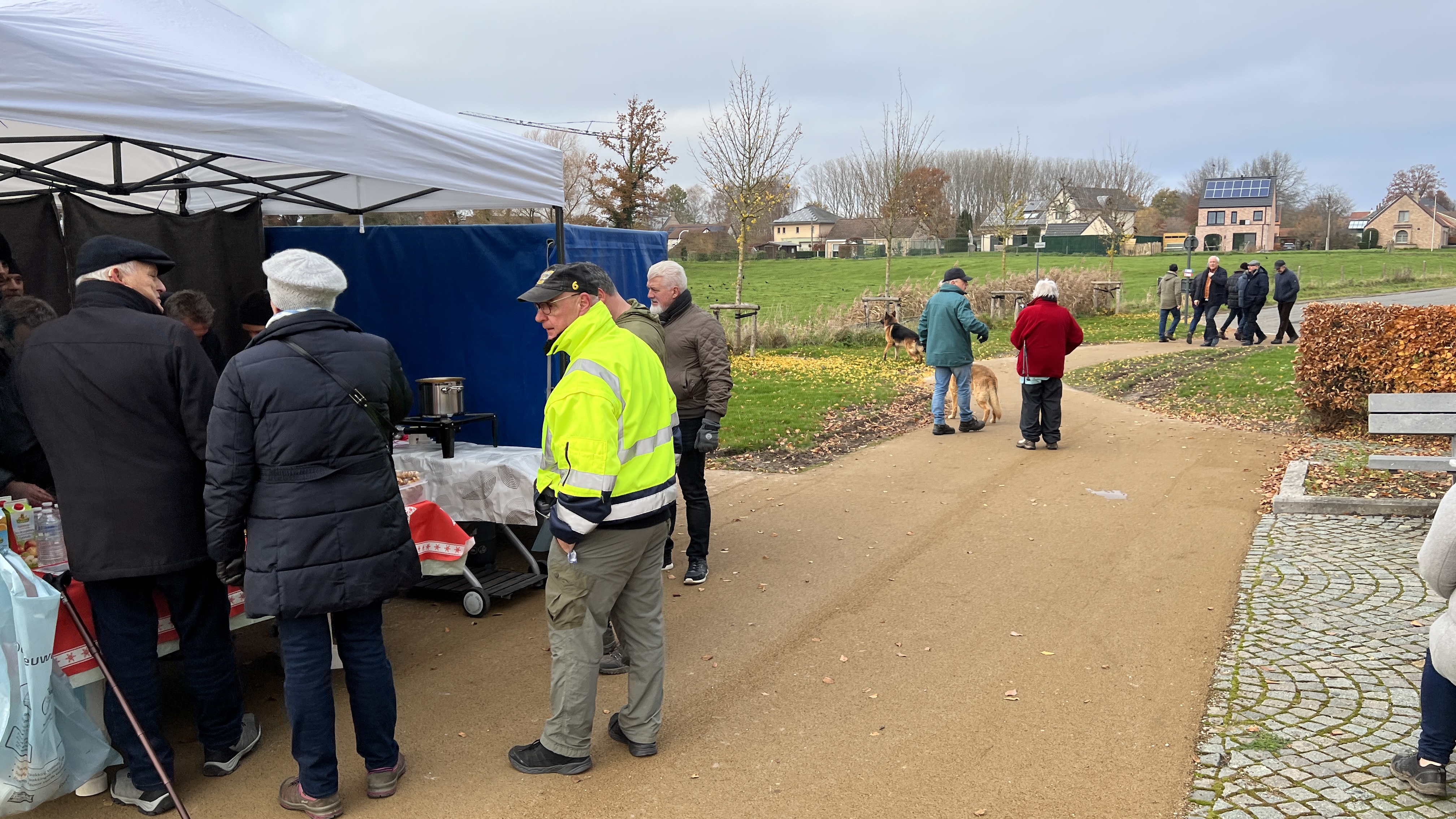 Met de start aan café De Alver had je keuze uit 2,5 – 5 of 8 km. Onderweg aan de Sint-Rochuskapel kon je bij een jeneverstand even genieten van een assortiment jenever, fruitsap, water en pompoensoep. Spijtig genoeg werd Het fietsen afgelast wegens het zeer koude weer.