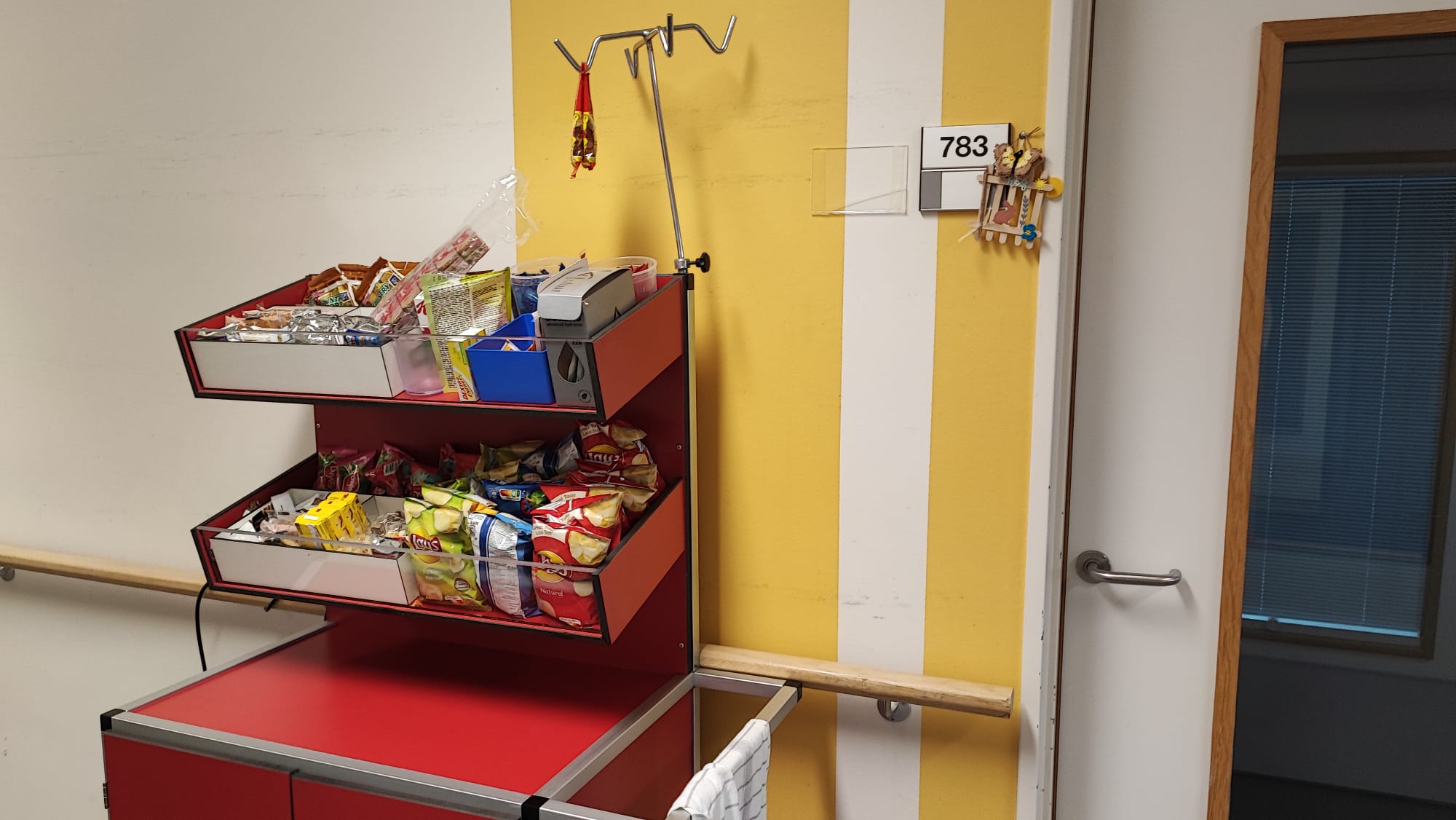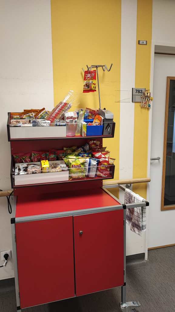 De snoepkar voorziet de patiënten van de afdeling hematologie van snoepgoed: zoals mars, snickers, Twix, chips, enz, maar ook van drank zoals: aquarius, Fanta, …